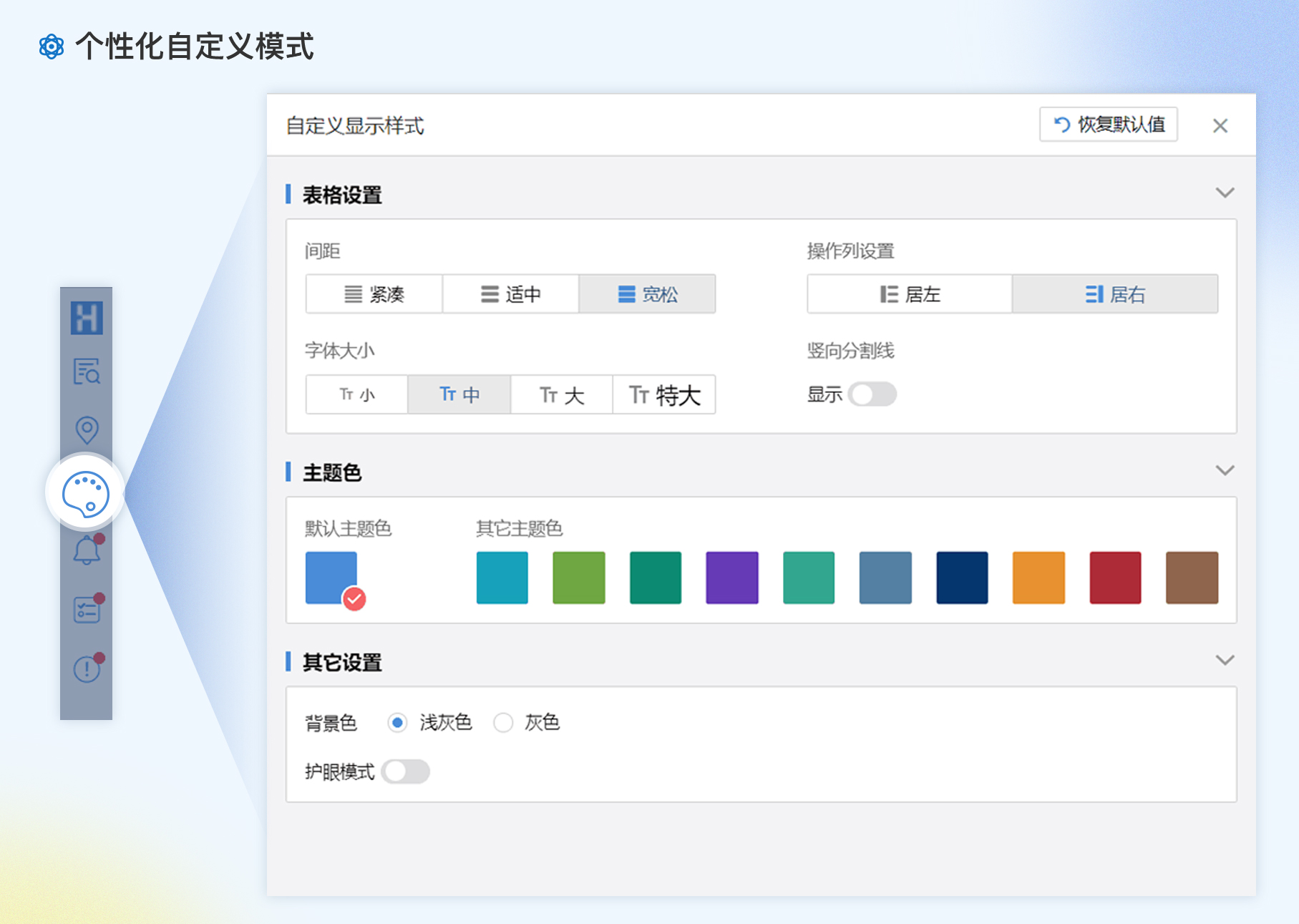 針對(duì)不同的館員存在的不同的需求,不同的使用習(xí)慣,不同的使用場(chǎng)景,提供針對(duì)使用者的個(gè)性化要求,從主體,顏色,字體到操作位置,表格顯示內(nèi)容和順序,書(shū)目信息呈現(xiàn)內(nèi)容,全方位定制化。提升易用性和使用習(xí)慣的繼承性。