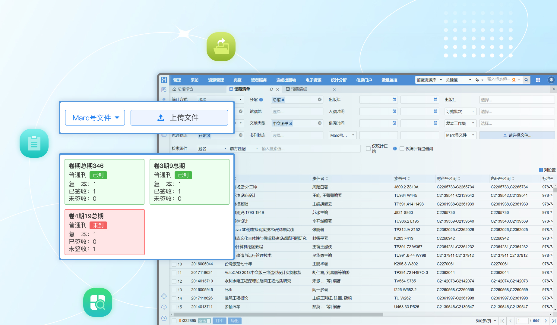 強(qiáng)大的館藏統(tǒng)計(jì)分析,數(shù)十種條件復(fù)合檢索與輸出。